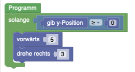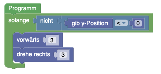 Dieses Programm zeichnet dasselbe Bild wie in Beispiel 2. Die Bedingung der Solange-Schleife wurde um einen Nicht-Block erweitert. Der Vergleichsoperator ≥ muss dann durch dessen Verneinung < ersetzt werden. |