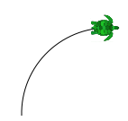 Die Turtle beginnt im Ursprung mit der Richtung 0° zu zeichnen, bei jedem Schleifendurchlauf bewegt sie sich um 5 Einheiten vorwärts und dreht sich dann um 3° nach rechts. Damit wird die Richtung bei jedem Schleifendurchlauf um 3° erhöht. Die Schleife wird solange durchlaufen, wie die Richtung kleiner als 90° ist. |