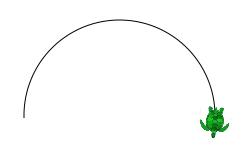 Die Turtle beginnt im Ursprung mit der Richtung 0° zu zeichnen. Bei diesem Beispiel wurde gegenüber Beispiel 1 lediglich, die Abbruchbedingung der Solange-Schleife geändert. Diese wird hier beendet, solange die y-Position gößer oder gleich 0 ist. Daher wird ein Halbkreis gezeichnet. Wenn der Vergleichsoperator ">" wäre, würde die Schleife nicht durchlaufen und die Turtle daher nicht zeichnen, da die Turtle zu Beginn die Position 0 hat. |