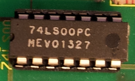 Die technische Lösung: Die Bauteile, in denen sich die Schaltungen befinden, haben eine eigene Spannungsversorgung. Der abgebildete Chip – in dem sich übrigens 4 NAND-Gatter (NOT AND) befinden (Stand: ca. 1980 !) – wird über das Beinchen links oben mit 5 V Spannung versorgt, das Beinchen rechts unten ist der Masseanschluss.